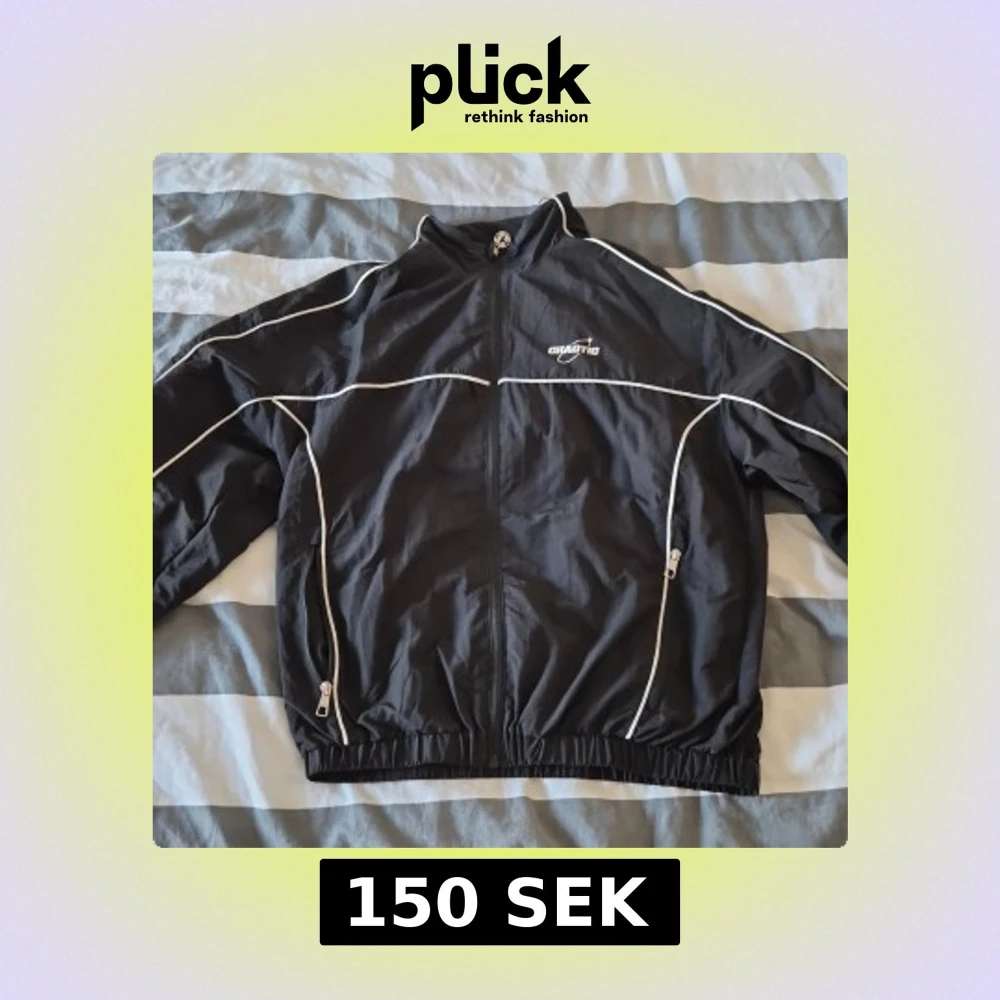 Svart vindjacka från Chaotic med vita kontrastlinjer och dragkedja framtill. Jackan har hög krage, elastiska muddar och två fickor med dragkedja. Snygg sportig look med logga på bröstet och coola detaljer längs ärmarna.
