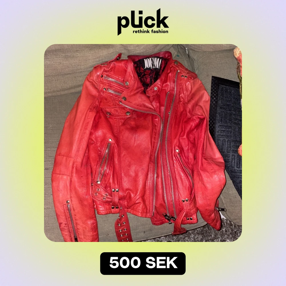 Säljer en cool röd skinnjacka från Joe M. Jackan har flera dragkedjor och knappar som ger den en edgy look. Perfekt för höst och vår, och funkar lika bra till fest som till vardags. Den är i bra skick och har en snygg passform. Den sitter åt rätt tight.