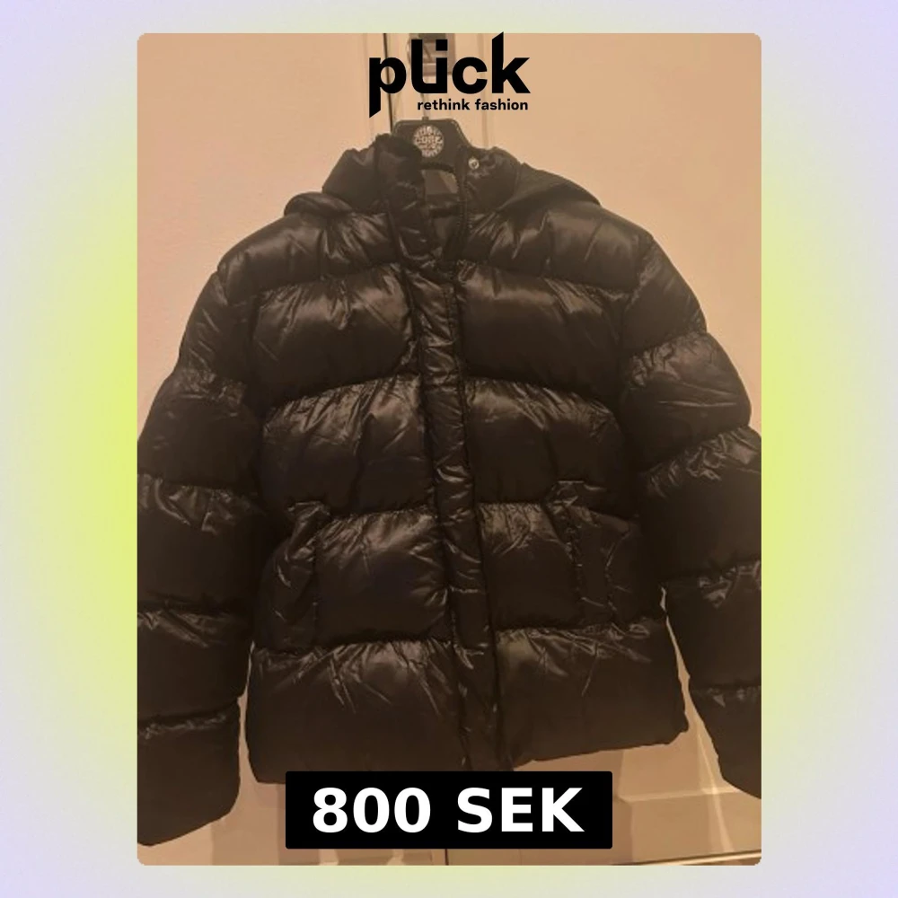 Svart pufferjacka i glansigt material med huva och praktiska framfickor. Jackan har dragkedja framtill och en quiltad look som ger extra volym. Perfekt för dig som vill ha en varm och snygg jacka med modern vibe. Jackan är helt ny ock aldrig använd. Den är köpt från Novant men det finns ingen lapp på märket i jackan, men jag kan skicka bild på bevis att den är från Novant om intresserad!💕