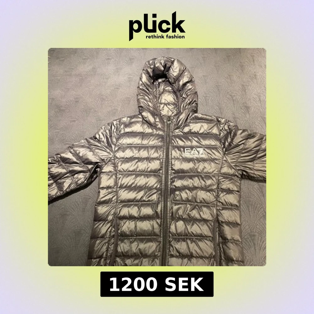 Säljer en grå pufferjacka från EA7 Emporio Armani med huva och dragkedja framtill. Jackan har ett stilrent quiltat mönster och logga på bröstet. Perfekt för kalla dagar när du vill hålla stilen och värmen.