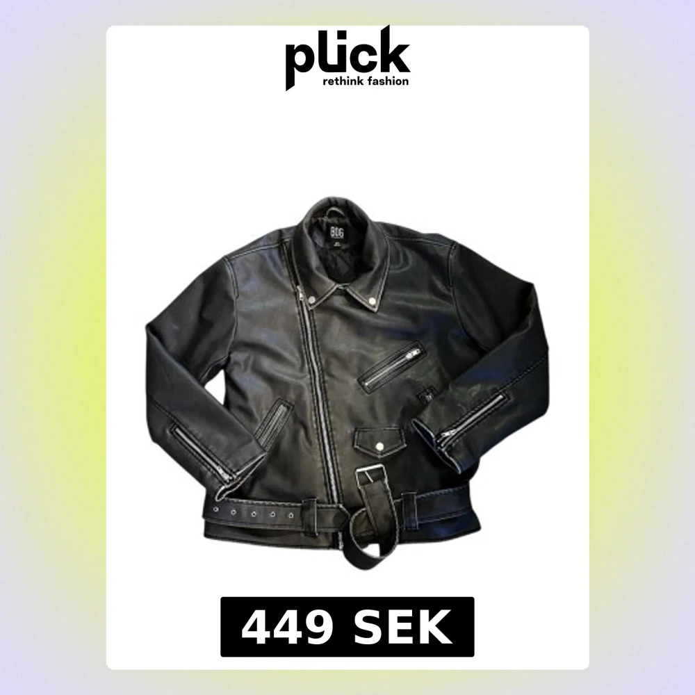 Säljer en svart skinnjacka från BDG Urban Outfitters med coola dragkedjor, snedställd frontzip, fickor och bälte i midjan. Klassisk bikerstil med detaljer som metallknappar och justerbara ärmslut. Perfekt för dig som vill ha en edgy look.