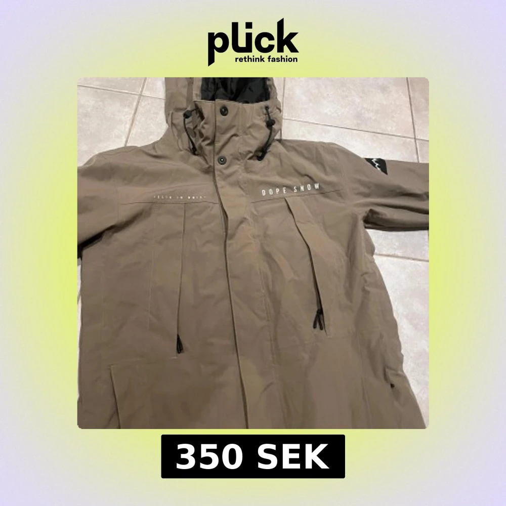 Säljer en beige skidjacka från Dope Snow med huva och snygga svarta detaljer. Jackan har dragkedjor, snörning vid huvan och tryckt logga på bröstet samt patch på ärmen. Perfekt för dig som gillar street och outdoor vibes.