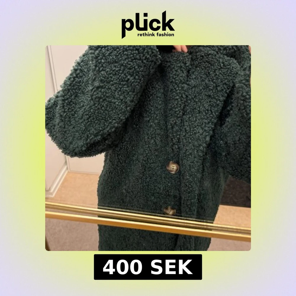 Mysig grön teddyjacka med knappar framtill. Perfekt för kyliga dagar med sin fluffiga och varma design. Jackan har långa ärmar och en klassisk krage.