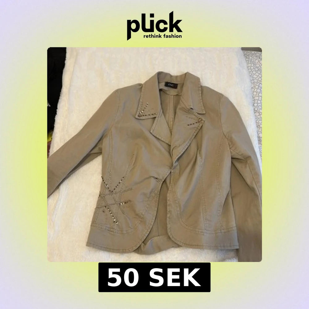 Stilren beige kavajjacka från eve21 med snygga paljettdetaljer på kragen och vid ena höften. Jackan har klassisk krage, markerade axlar och är helfärgad. Perfekt för dig som vill sticka ut lite extra med detaljer.