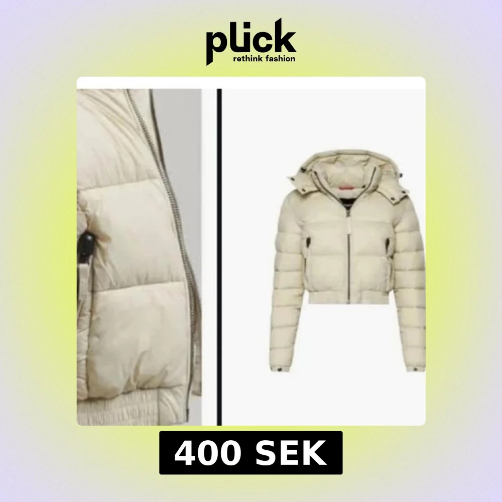 Snygg croppad pufferjacka i beige med huva och dragkedja framtill. Jackan har quiltad design och ribbad nederkant för extra stilpoäng. Perfekt för dig som vill ha en trendig och varm look under kyliga dagar.