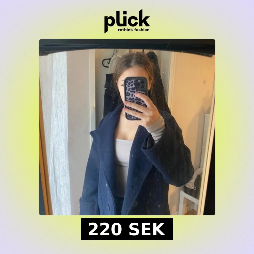 Säljer en stilren mörkblå kappa. Jackan har en loose passform och är långärmad, perfekt för dig som gillar klassisk look. Materialet är ullblandning som håller dig varm under höst och vinter. Andvänd men äri bra skick