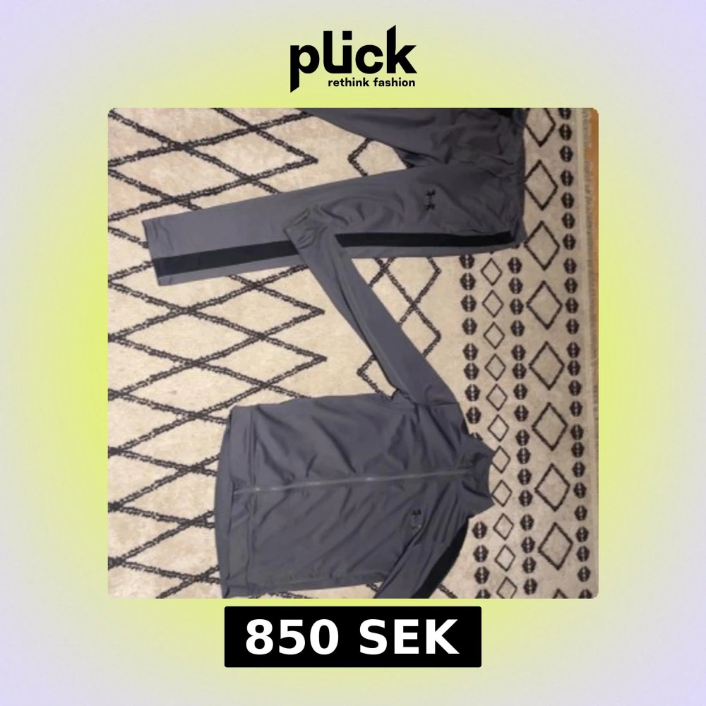 Säljer en grå träningstracksuit från Under Armour med dragkedja framtill och lång ärm. Tracksuiten har en sportig look och är perfekt för träning eller vardagsaktiviteter. Enkel och stilren design med diskret logga på bröstet.