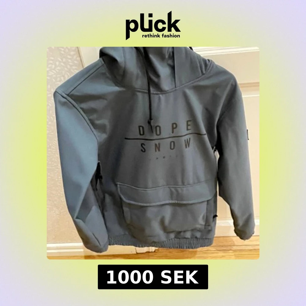 Säljer en grå hoodie från Dope Snow med stor magficka, huva med snörning och tryckt logga framtill. Perfekt för kalla dagar och snygg streetstil. Materialet känns slitstarkt och har en lite loose passform.