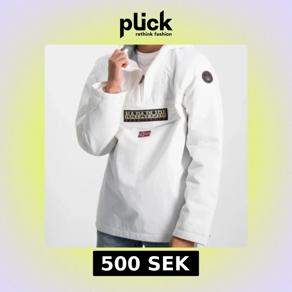 Säljer en vit jacka från Napapijri med halv dragkedja, huva och stor logga på bröstet. Använt som skidjacka men går ju att ha under vintern som vardagsjacka. Nypris 1799kr. Står storlek 170 i men skulle säga S.