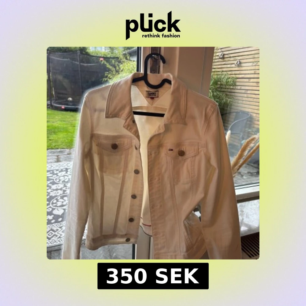 Snygg vit jeansjacka från Tommy Jeans med klassisk krage, bröstfickor med knappar och diskret logga på ena fickan. Jackan har raka linjer och silverfärgade knappar framtill. Perfekt för dig som vill ha en clean och stilren look.