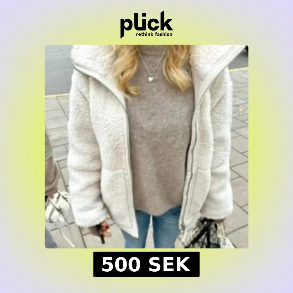 Mysig och trendig vit teddyjacka med hög krage och dragkedja framtill. Jackan har två stora fickor och en loose passform som ger en avslappnad vibe. Perfekt för kyliga dagar när du vill vara både varm och snygg.