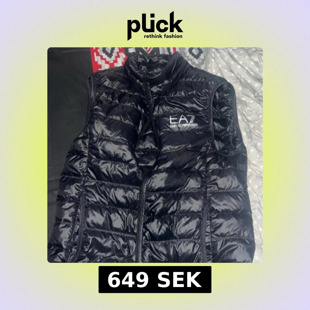 Snygg svart dunväst från Emporio Armani EA7 med glansig finish och horisontella quiltade sömmar. Västen har dragkedja framtill och logotyp på bröstet. Perfekt att slänga över en hoodie för en cool look.