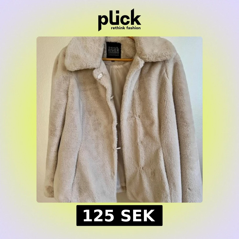 Fluffig och mjuk beige (fusk)pälsjacka från Soul River med bred krage och diskret knäppning framtill. Jackan har en clean look och är helfodrad på insidan. Perfekt för dig som vill ha en cozy vibe och gillar neutrala färger.