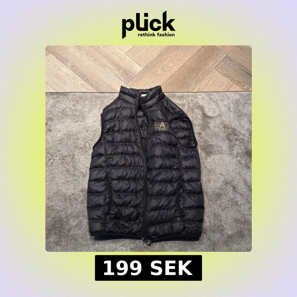Svart quiltad dunväst från Emporio Armani EA7 med guldfärgad logga på bröstet. Västen har ståkrage, två sidofickor och dragkedja framtill. Perfekt för lager-på-lager och snygg till streetwear. Stilren design med lätt glansigt material.