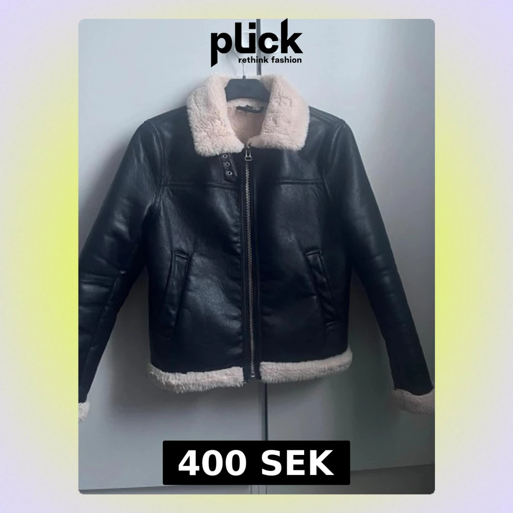Säljer en svart teddyjacka med mjukt, ljust fuskpälsfoder och krage. Jackan har dragkedja framtill, två fickor och detaljer i skinnimitation. Perfekt för kalla dagar och ger en cool vibe till din outfit.