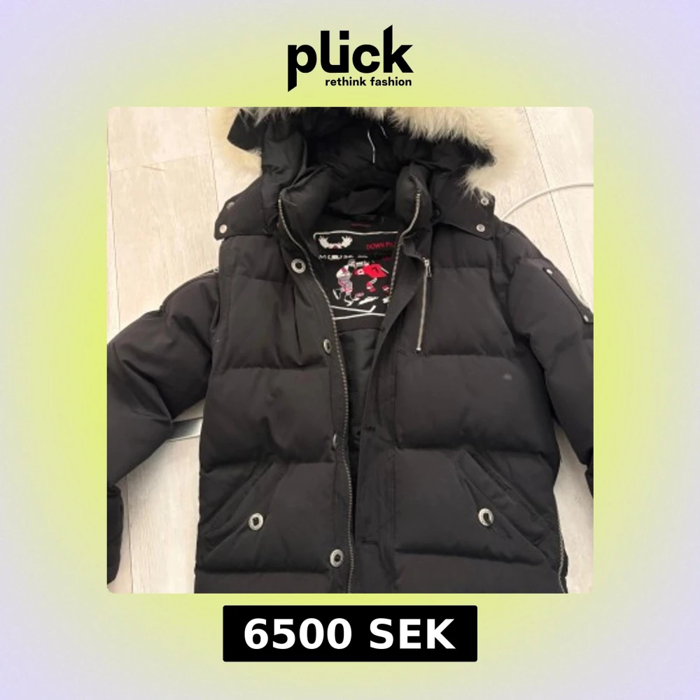 Säljer en svart dunjacka från Moose Knuckles med pälskantad huva. Jackan har dragkedja och knappar framtill samt flera praktiska fickor. Perfekt för kalla vinterdagar.
