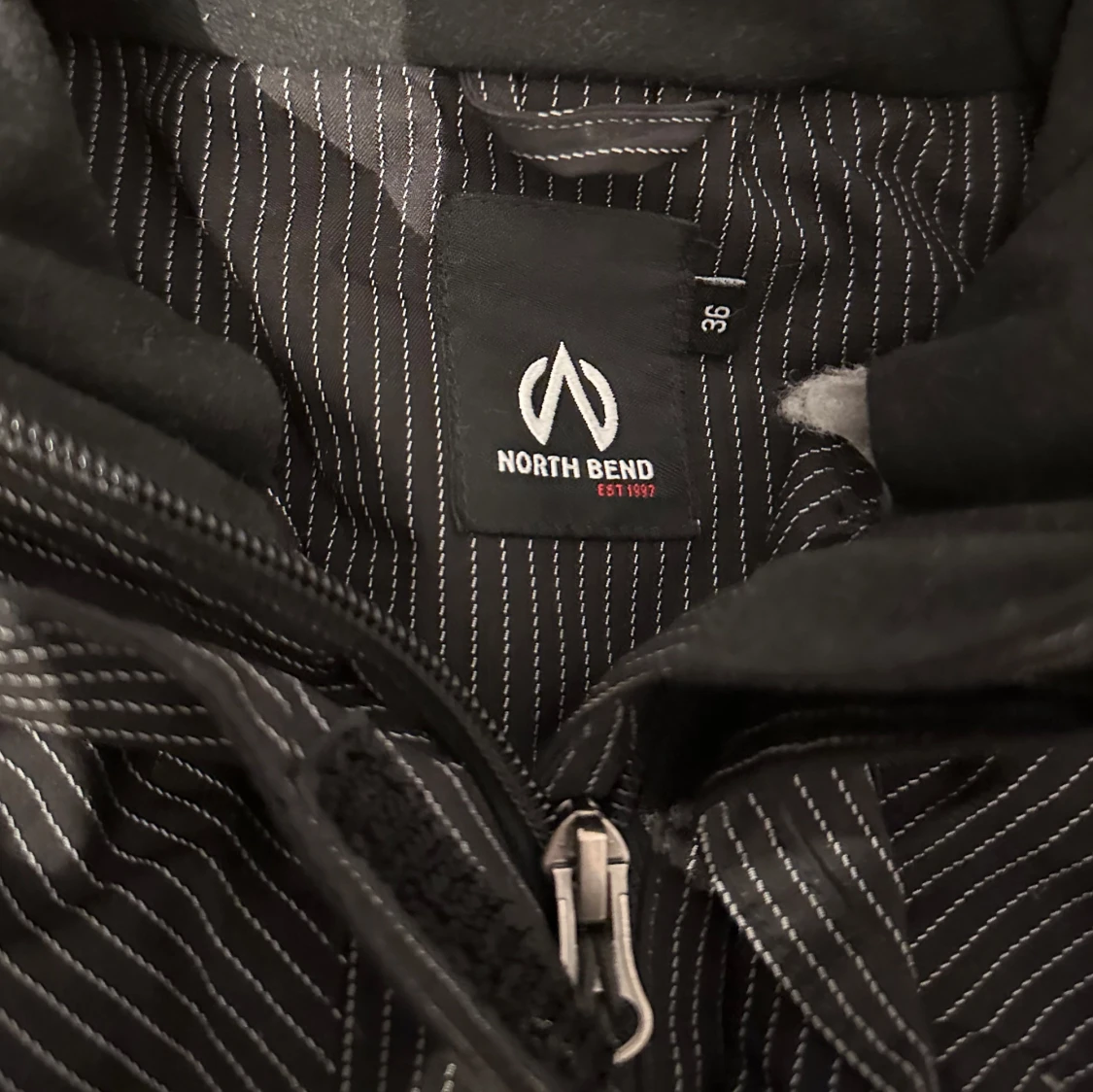 Vinterjacka från märket ”North Bend 1997”. Jackan är i fint skick. Det finns hål för tummarna, storlek 36