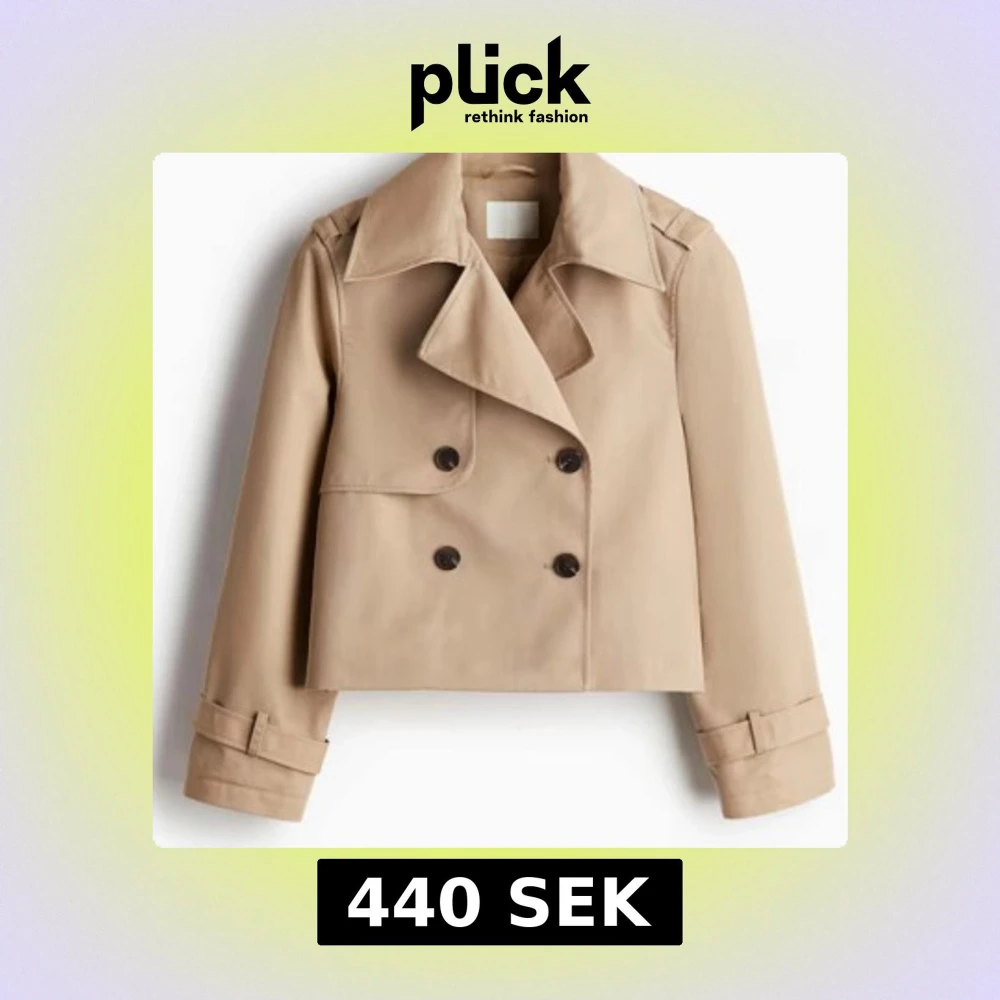 Snygg beige trenchcoat med dubbelknäppning och klassisk krage. Jackan har långa ärmar med justerbara spännen vid ärmsluten för en stilren look. Perfekt för vår och höst!