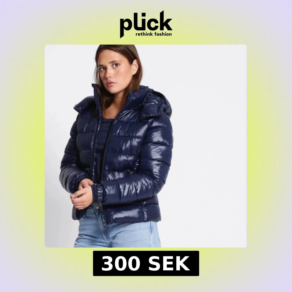Säljer en snygg mörkblå pufferjacka med glansig finish och huva. Jackan har dragkedja framtill och är quiltad för extra värme. Perfekt för kyliga dagar och har en modern, lite kortare passform som funkar till jeans och sneakers.
