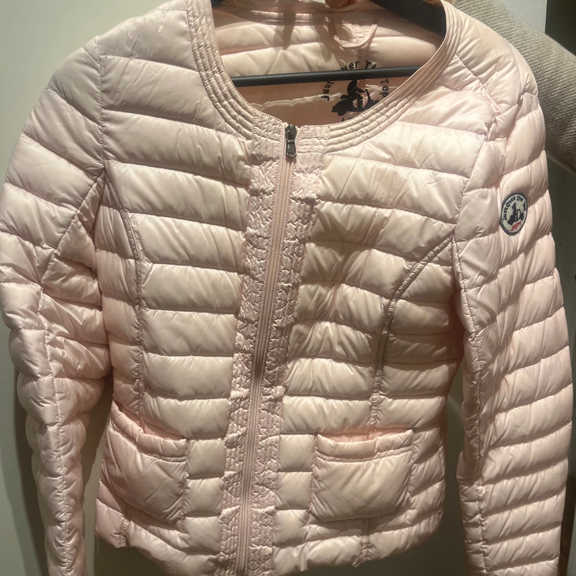 Supersöt ljusrosa dunjacka från JOTT med quiltad design och rund halsringning. Jackan har dragkedja framtill, två fickor och ett broderat JOTT-märke på ärmen. Perfekt för dig som vill ha en lätt och snygg jacka till kyliga dagar. Kan diskutera pris.