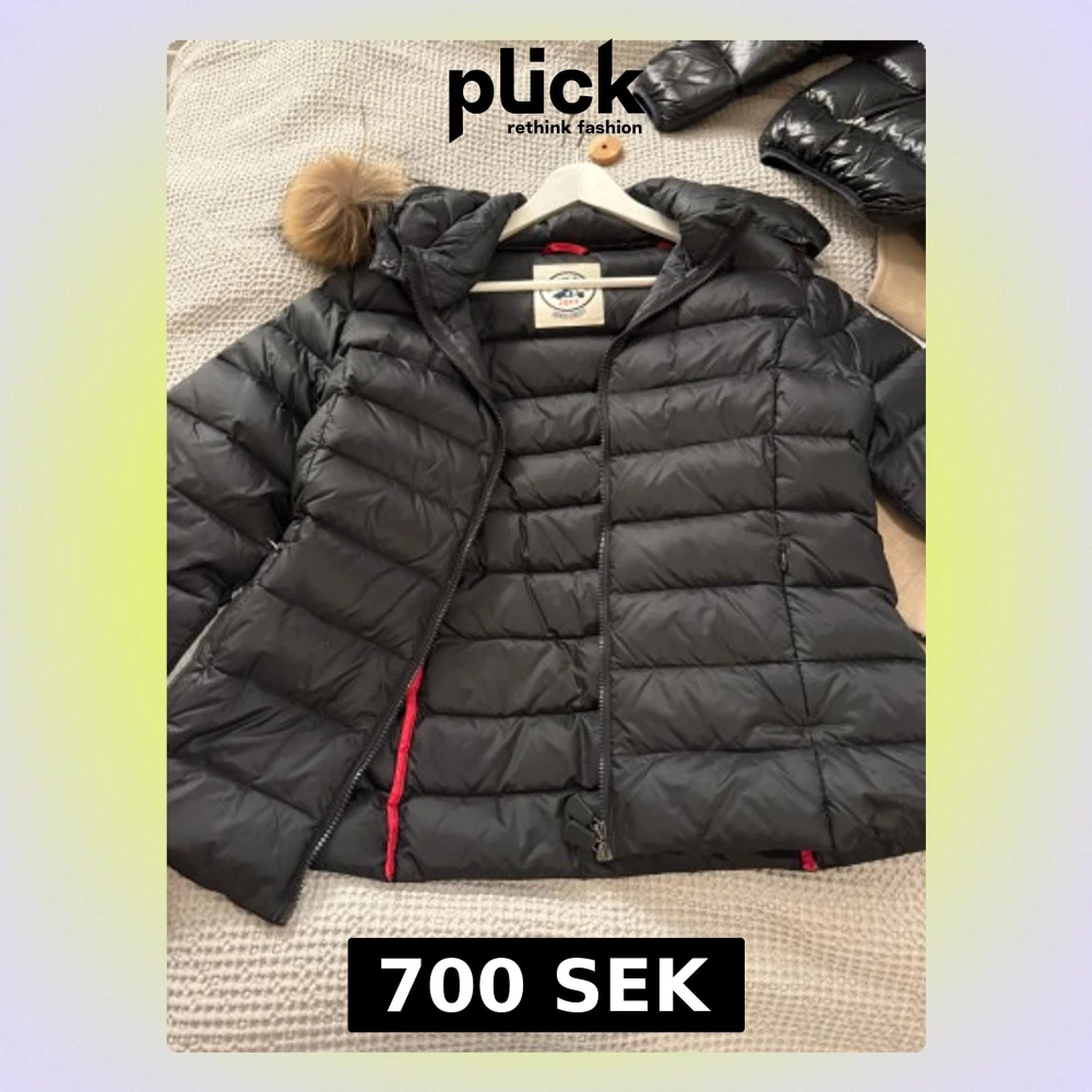Snygg svart dunjacka från JOTT med avtagbar huva och fuskpälsdetalj. Jackan har quiltad design, dragkedja framtill och röda detaljer på insidan. Perfekt för kalla dagar och har en klassisk badge på ärmen.
