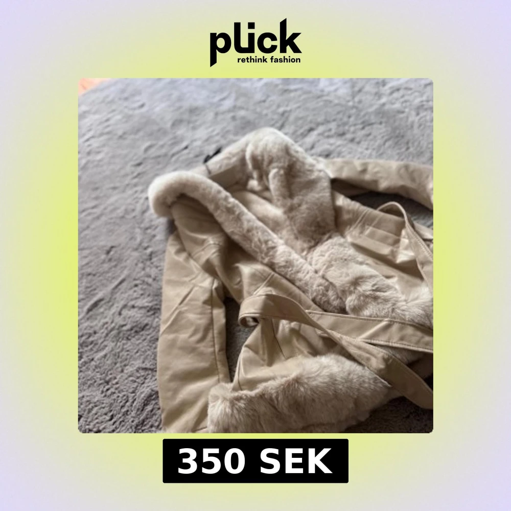 Snygg beige pälsjacka från FLAMMode i storlek S. Jackan har mjukt fuskpälsfoder, bred krage och bälte i midjan. Inte använd då jag inte gillar hur den sitter på mig.