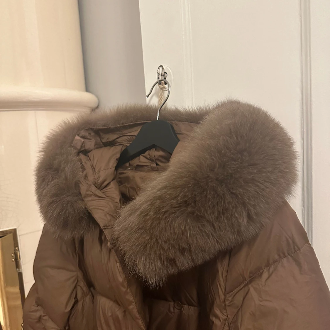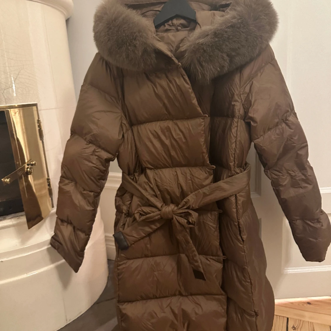 Näst intill oanvänd jacka från FurStockholm i modell Lilly. Endast haft den på mig påväg till kontoret (insåg att den inte passade mig). Jackan når vanligtvis till vaderna men är upplagd hos skräddare och når till knät.