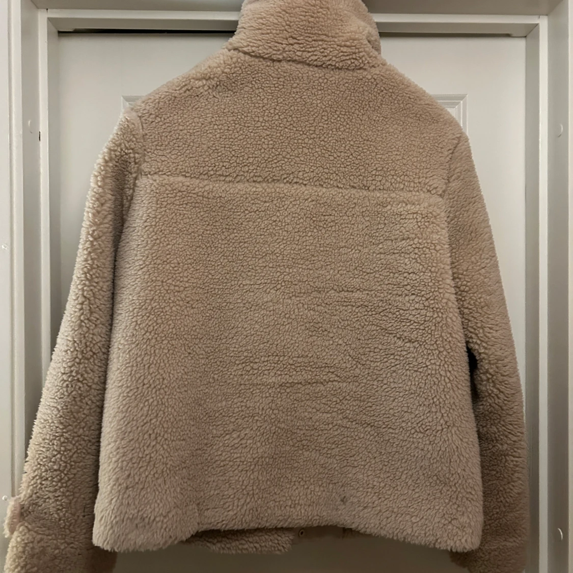Mysig beige teddyjacka från Pernilla Wahlgren. Jackan har en hög krage och två stora fickor framtill. Stängs med dragkedja och tryckknappar. Normal i storlek