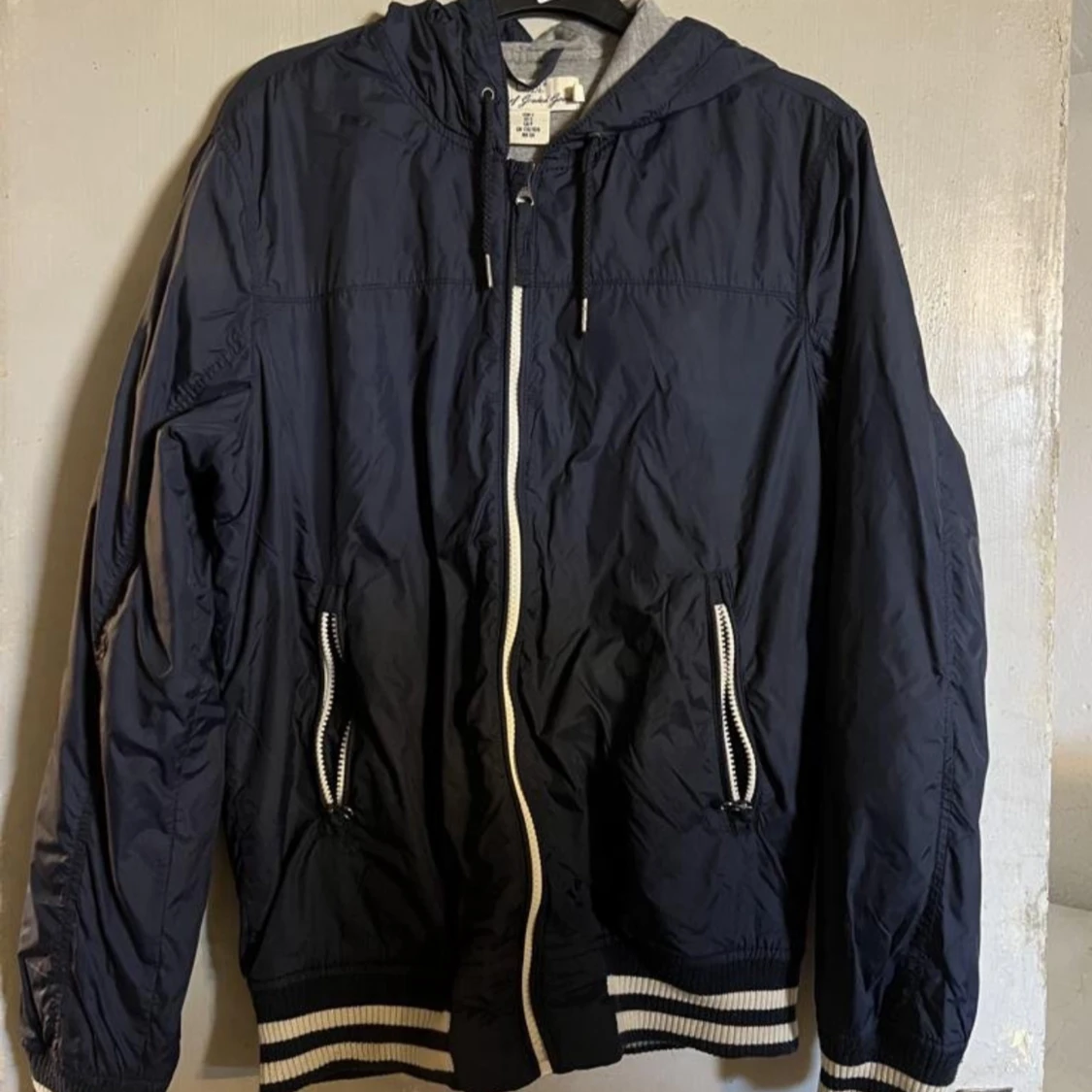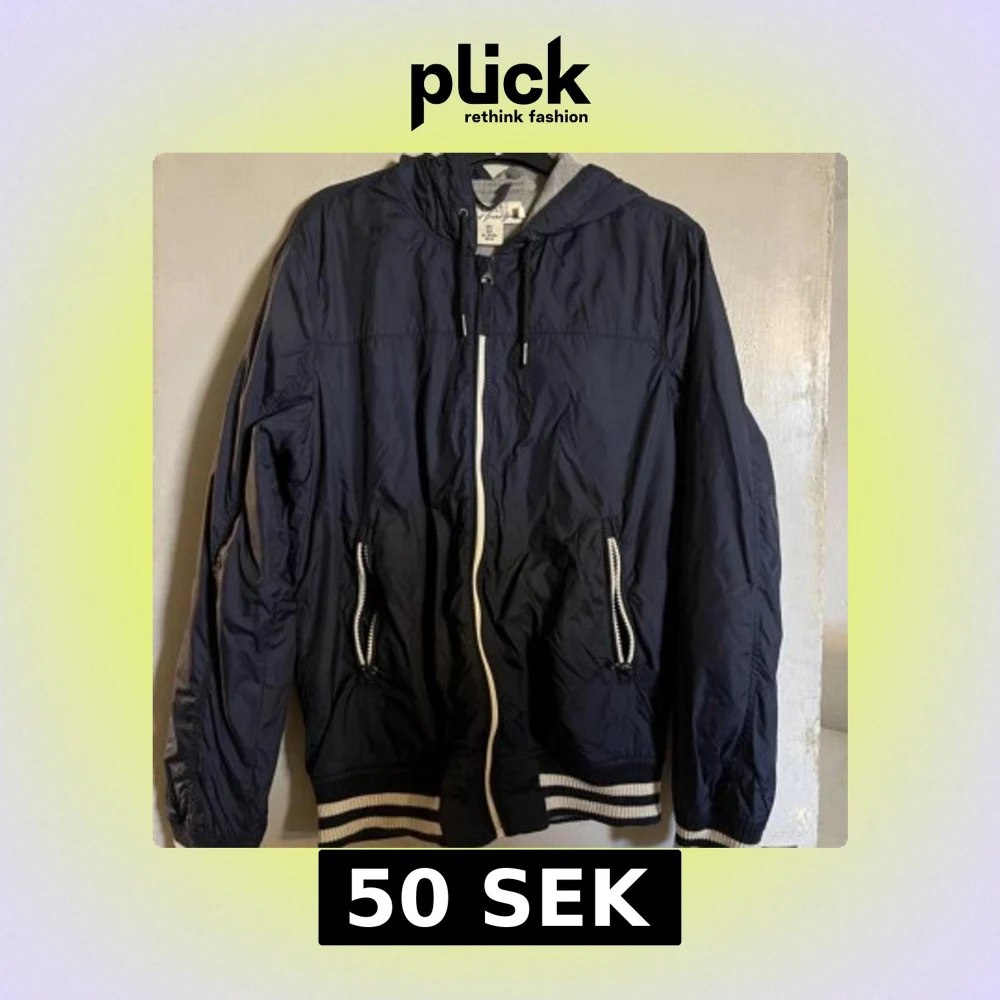 Snygg mörkblå vindjacka från L.O.G.G. med huva och vita detaljer på dragkedja och fickor. Jackan har ribbade muddar med vita ränder och snörning vid huvan. Perfekt för dig som gillar sportig och clean stil.