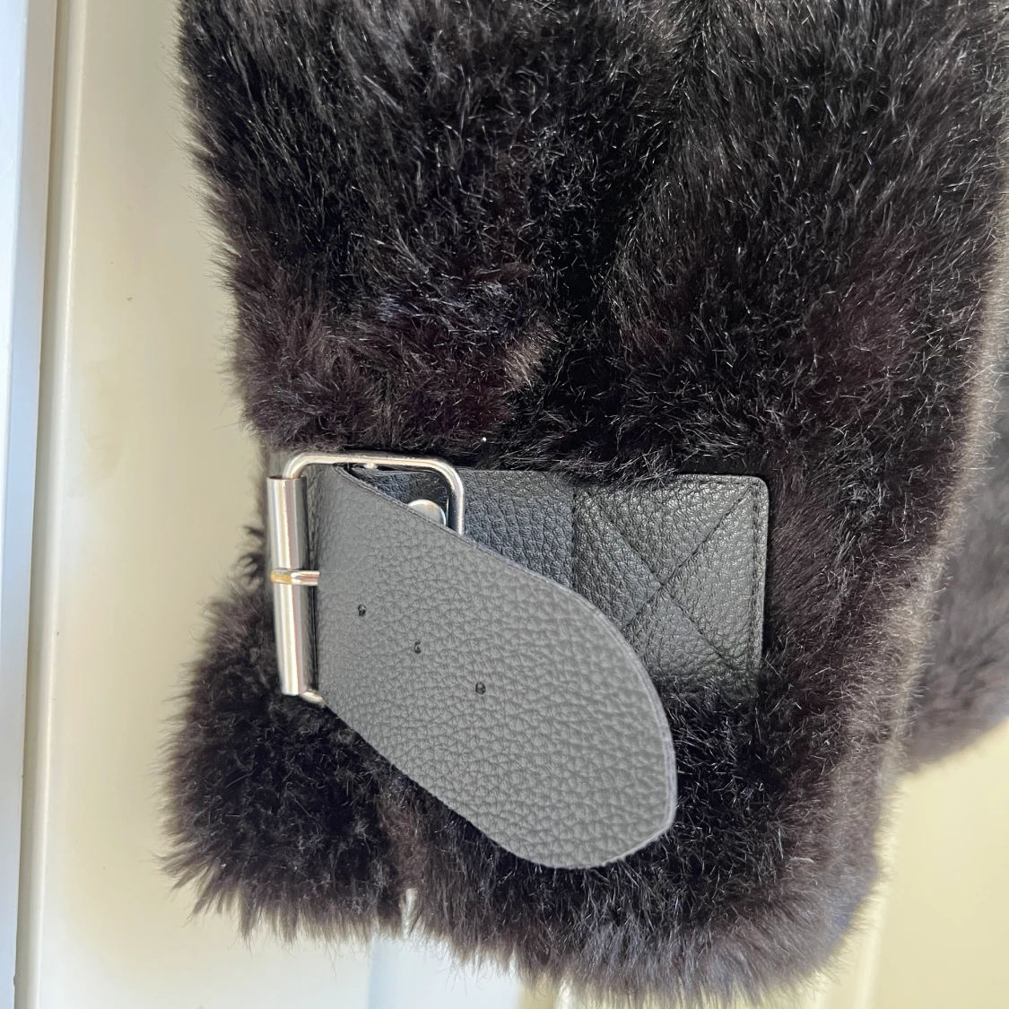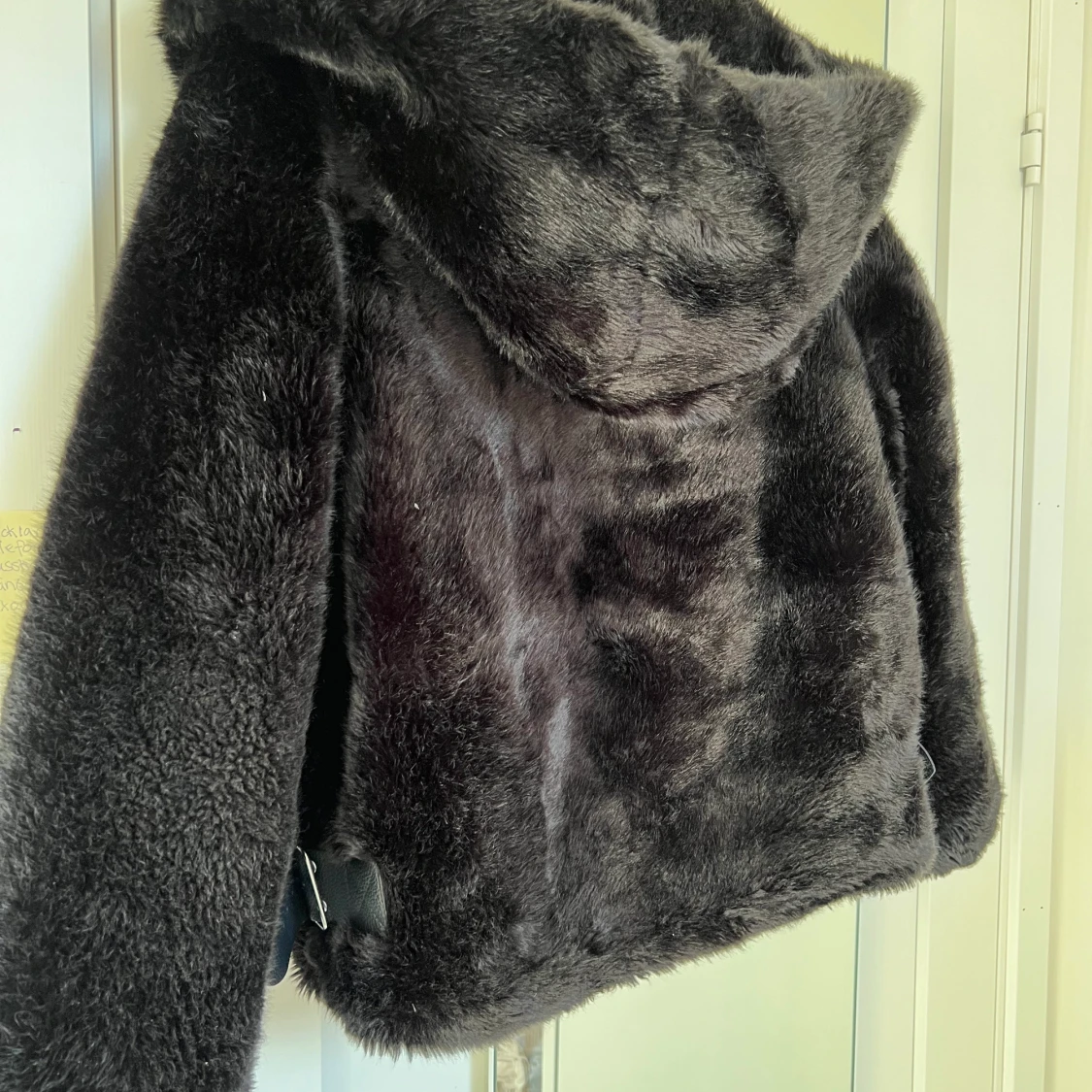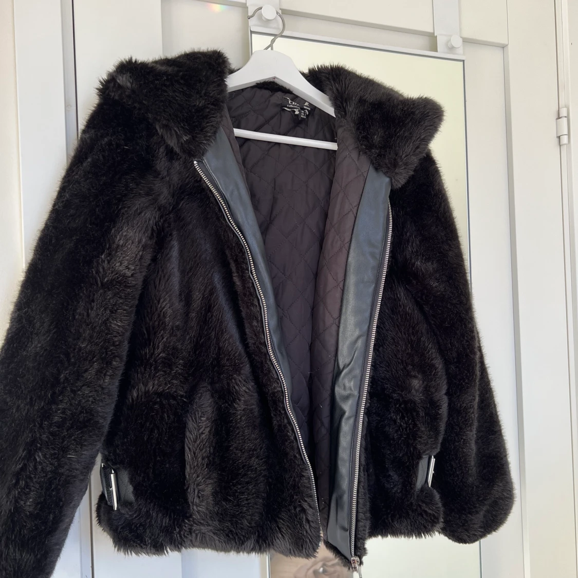 Säljer denna varma faun fur jackan från zara. Den är knappt använd och finns inte några tecken på användning heller. Den har snygga spänn detaljer på sidan av jackan.