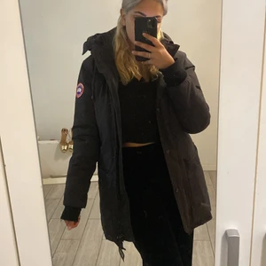 Canada Goose jacka - Säljer en svart vinterjacka från Canada Goose med lång ärm och flera praktiska fickor. Jackan har en hög krage och en tydlig logotyp på ärmen. Perfekt för kalla dagar. Hör av er vid minsta frågan!
