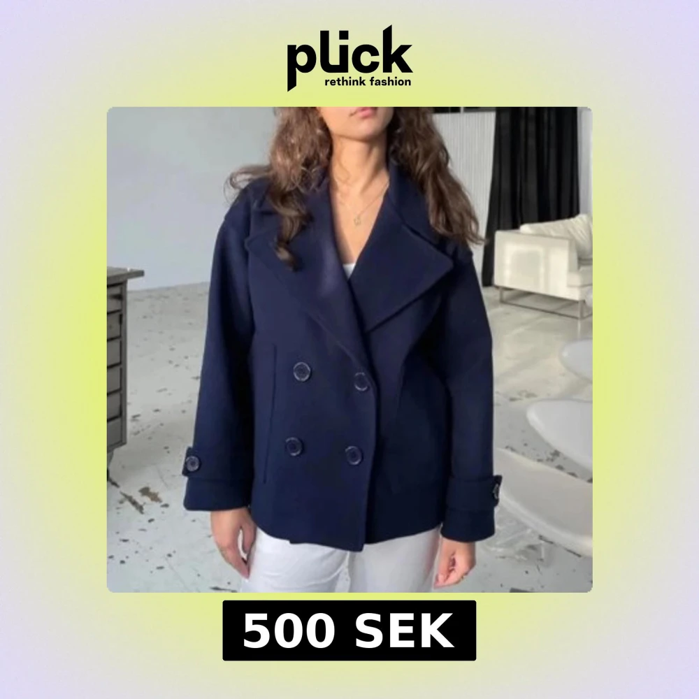 Snygg mörkblå kappa med dubbelknäppning och bred krage. Perfekt för kyliga dagar med sin stilrena design och långa ärmar. Passar både till jeans och mer uppklädda tillfällen.den är från design by si 💗
