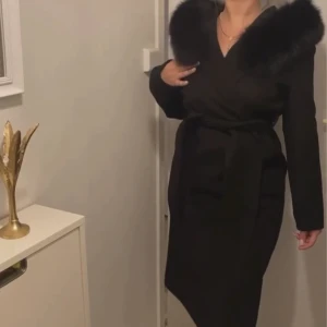 Säljer min svarta kappa som är i den långa modellen. Har använt den 1 gång. Storlek s och figursydd.