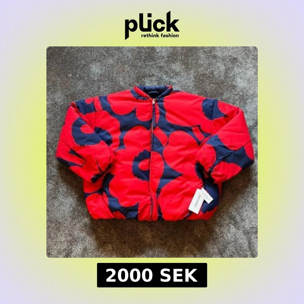 En snygg och trendig jacka från Marimekko med ett blommönster i rött och blått. Jackan har en bekväm passform och är perfekt för kallare väder. Jackan är slutsåld i den här storleken. Jackan är använd kanske två gånger men lappen är fortfarande kvar. Mycket fint skick. Storlek S Skriv om du har fler frågor eller vill ha fler bilder! :)