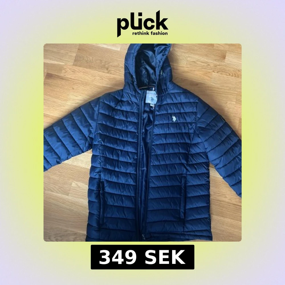 Säljer en mörkblå jacka från U.S. Polo Assn. med dragkedja och huva. Jackan har ett quiltat mönster och är perfekt för våren . Den har en broderad logga på bröstet och är långärmad. Den är använd ett fåtal gånger men i bra skick.