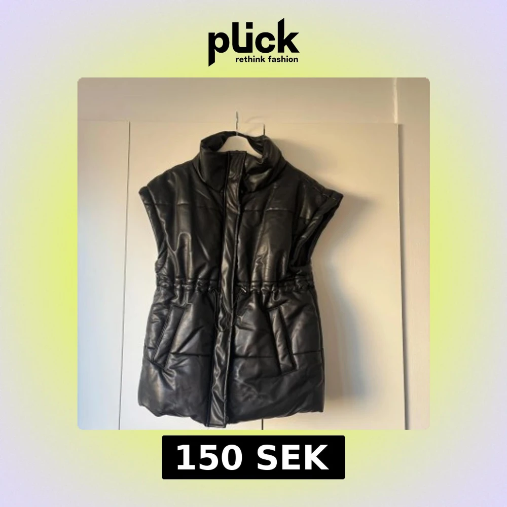 Svart dunväst från LXA med coolt quiltad design och hög krage. Västen har snörning i midjan för snygg passform och två praktiska fickor framtill. Materialet är skinnimitation som ger en edgy look. Perfekt att slänga över en hoodie eller tröja när det är kyligt ute.