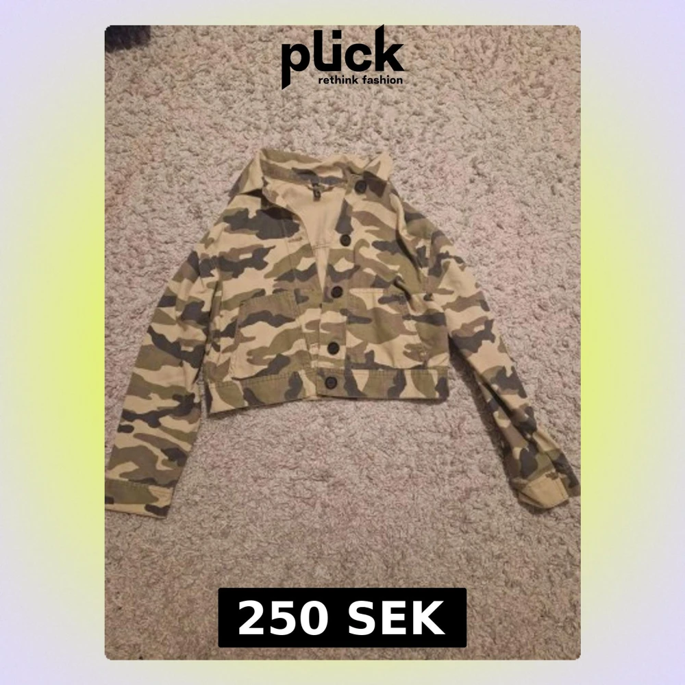 Snygg croppad jacka från H&M Divided i camouflage-mönster. Jackan har knappar framtill, två stora fickor och är i bomullstyg. Perfekt för dig som vill sticka ut med en streetstyle-look.