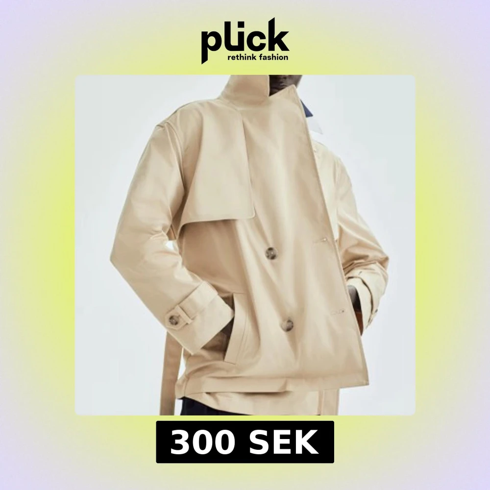 Snygg beige trenchcoat med dubbelknäppning och bälte i midjan. Aldrig använd så i nytt skick! Nypris 550kr