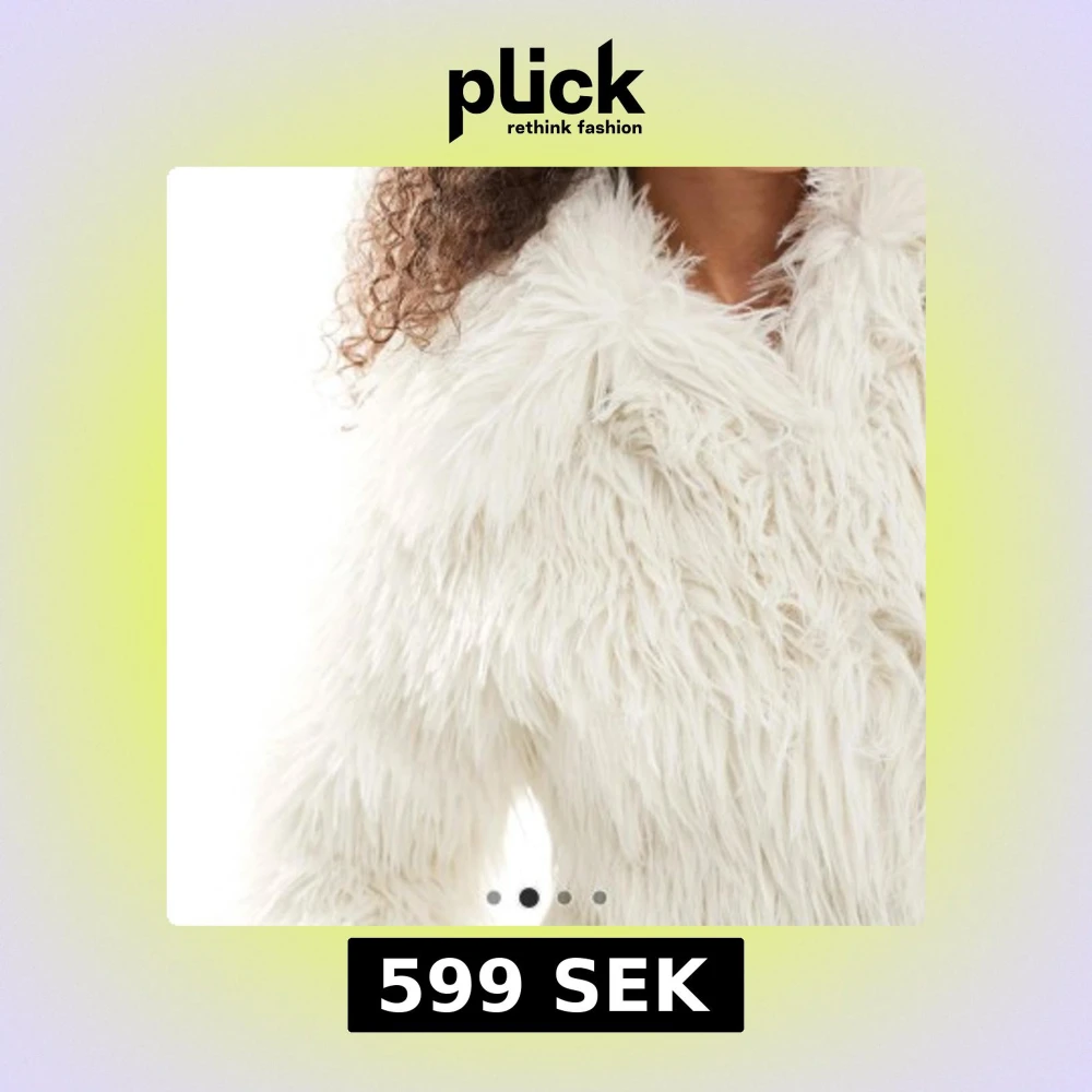 Supermjuk och vit pälsjacka med lång luddig fuskpäls. Jackan har hög krage och breda ärmar för en riktigt cozy vibe.