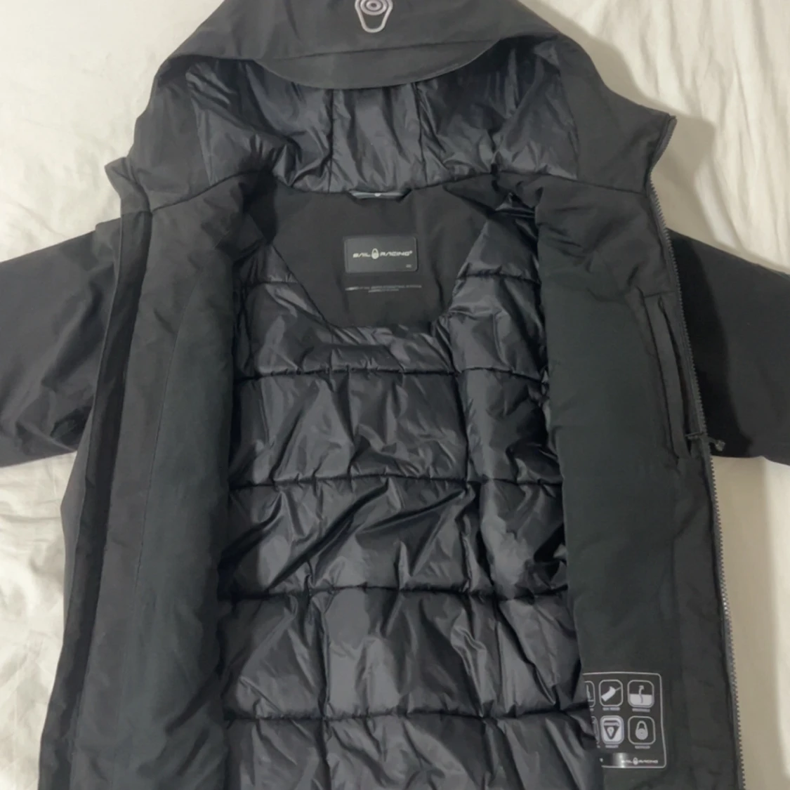 Svart dunjacka från Sail Racing med huva och två bröstfickor med dragkedja. Jackan har quiltad insida, hög krage och logga på bröstet. Perfekt för kalla dagar och har en clean, sportig look.