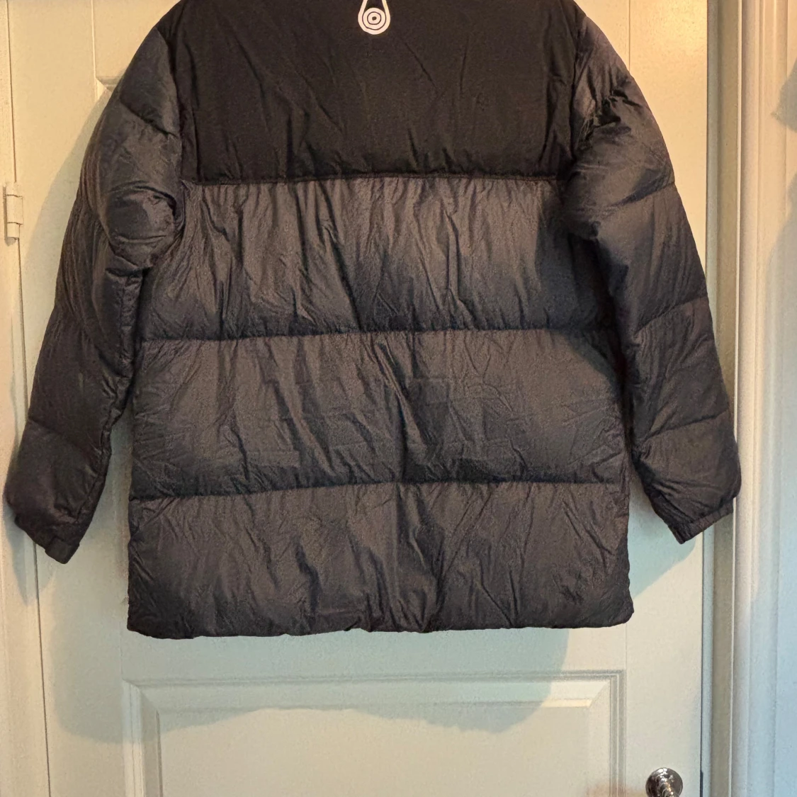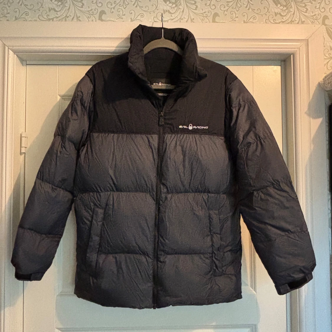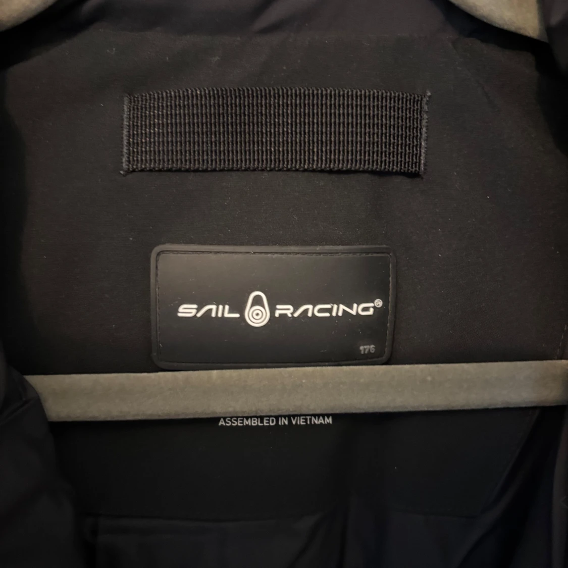 Säljer en svart pufferjacka från Sail Racing med hög krage och dragkedja framtill. Jackan är quiltad och har en stilren look med logga på bröstet och ryggen. Perfekt för kalla dagar när du vill hålla värmen och ändå se snygg ut. En reva på ryggen finns, därav priset. Se sista bild.