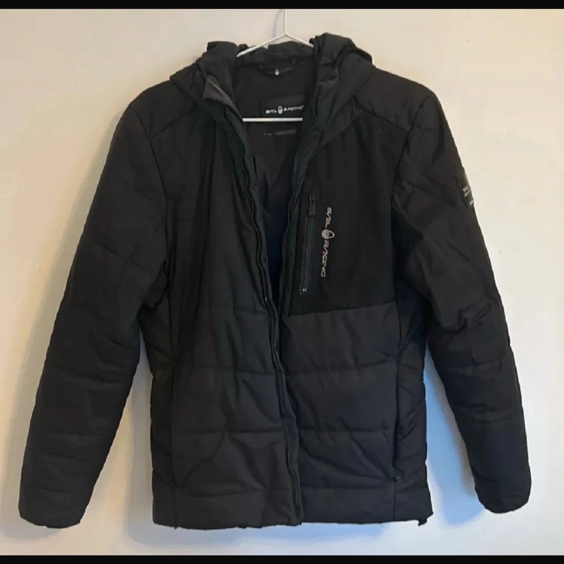 Snygg svart jacka från Sail Racing med dragkedja och huva. Perfekt för kyligare dagar med sin quiltade design. Jackan har en praktisk bröstficka med dragkedja och är tillverkad i slitstarkt material.pris går att diskutera