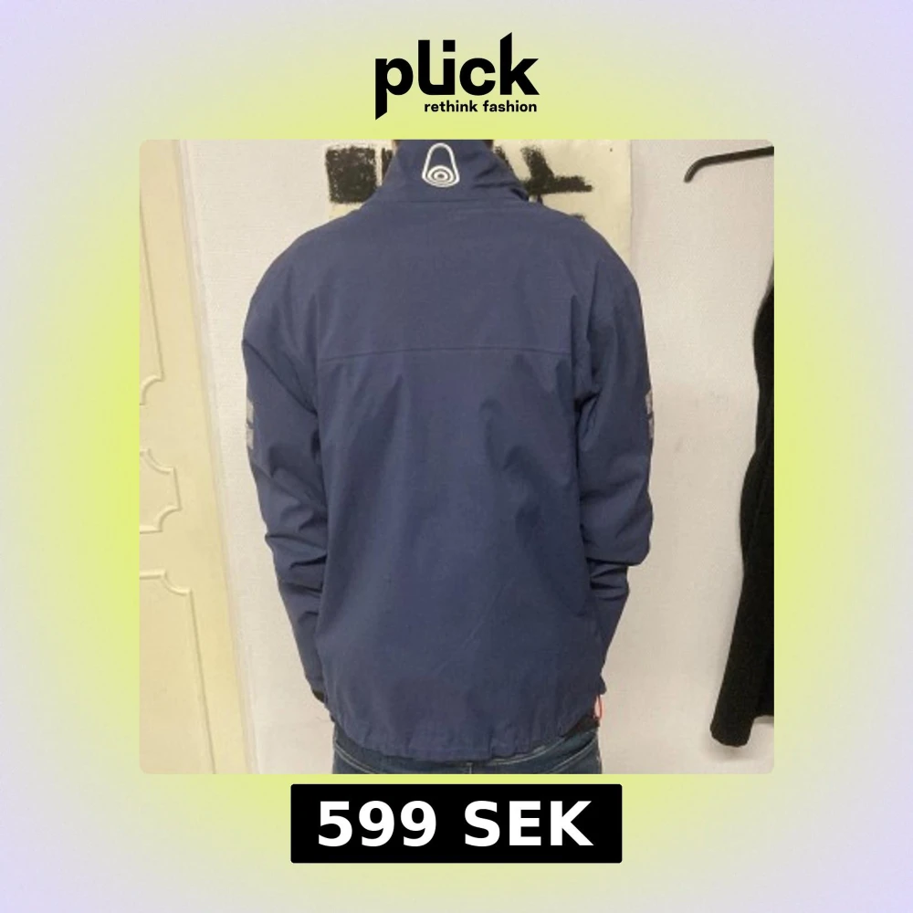 Säljer en blå jacka från Sail Racing med dragkedja och logotypdetaljer på bröstet och ärmen. Jackan har en hög krage och är långärmad, perfekt för kyligare dagar. Den har en stilren design som passar bra till jeans.