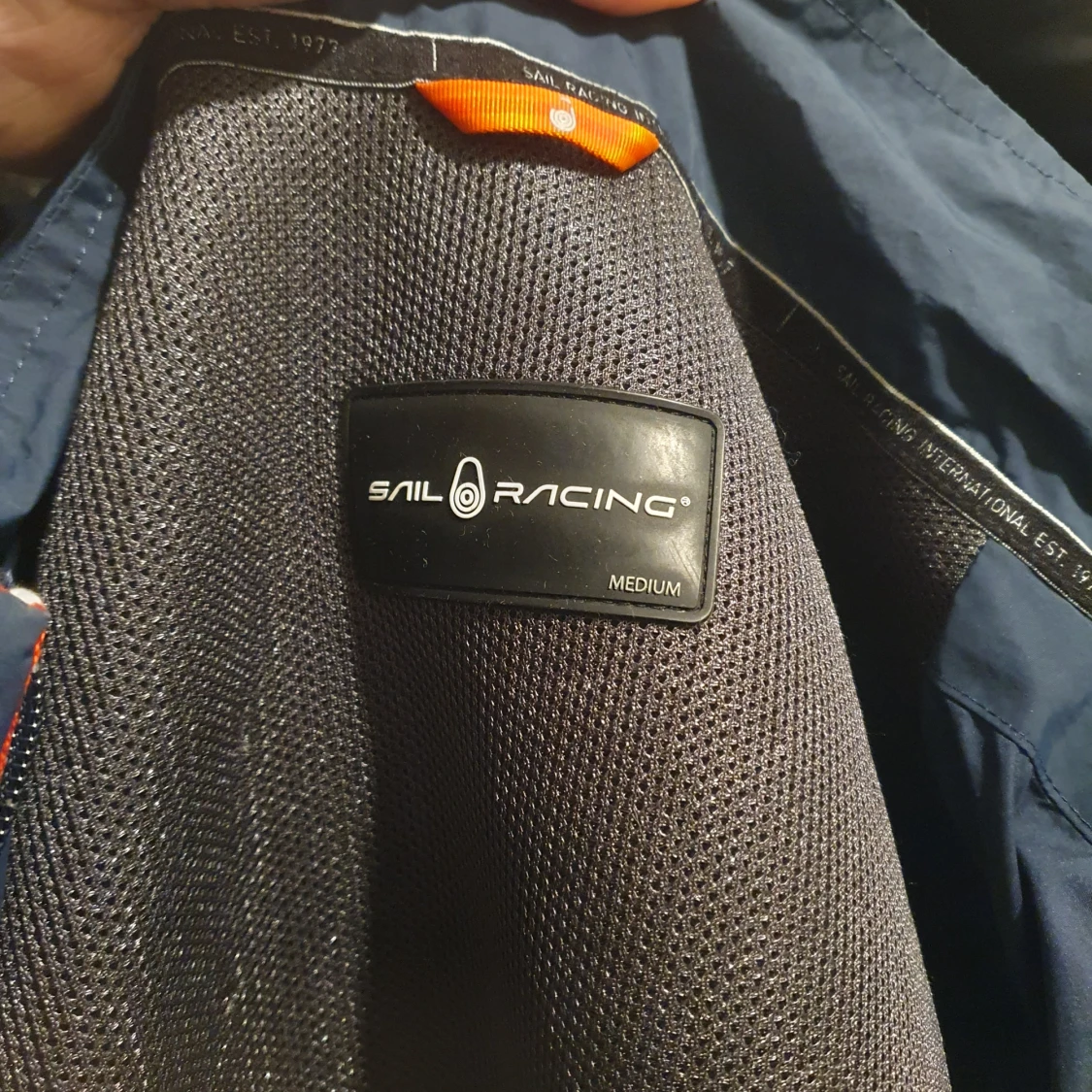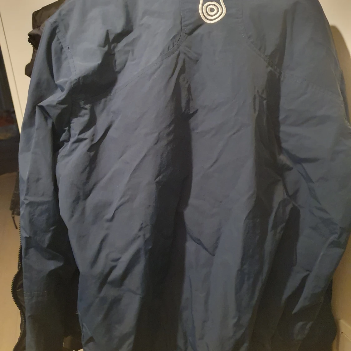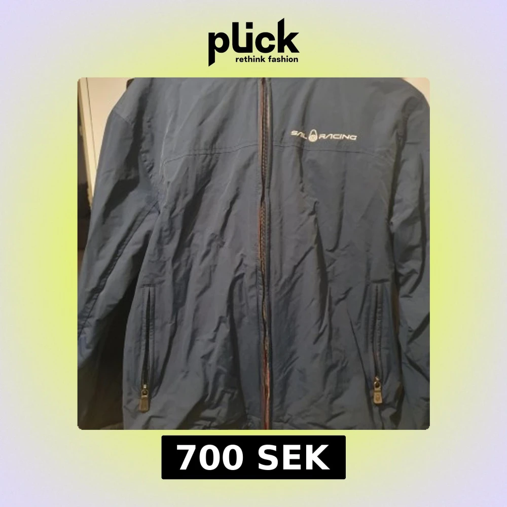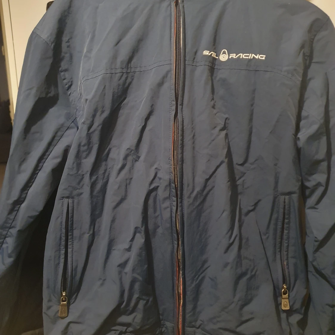 Säljer en blå vindjacka från Sail Racing med dragkedja framtill och två fickor med dragkedjor. Jackan har en stilren design med logotyp på bröstet och ryggen. Perfekt för blåsiga dagar.