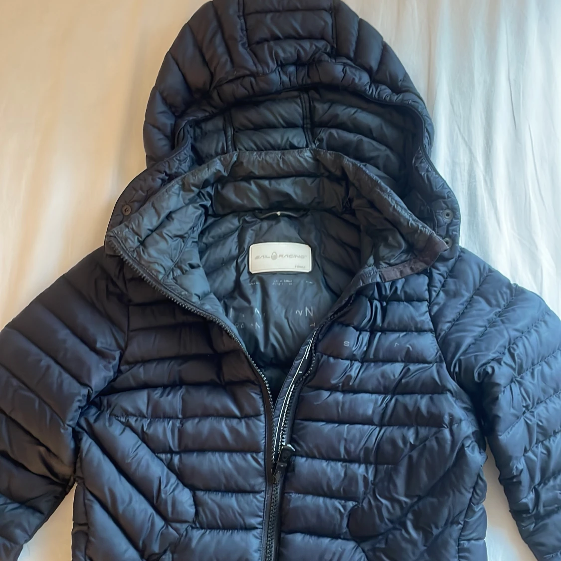 Säljer en svart pufferjacka från Sail Racing i storlek XS. Jackan har huva, hel dragkedja och är quiltad med horisontella sömmar. Perfekt för kyliga dagar och har en clean look.. Materialet är syntet och jackan är lätt och smidig att bära.