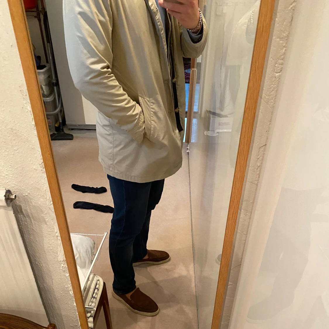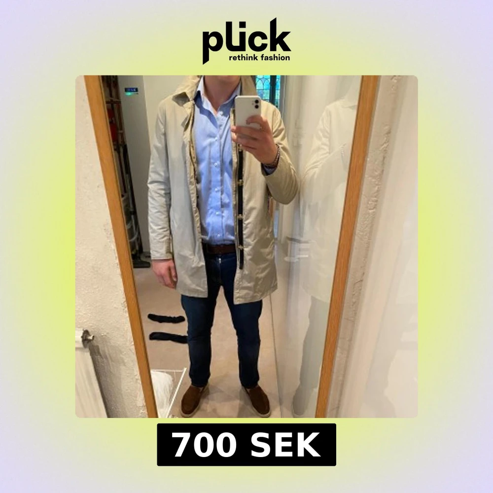 Snygg beige trenchcoat med klassisk ståkrage och knappar framtill. Jackan har en stilren design med raka linjer och diskreta fickor på sidorna. Perfekt för dig som vill ha en clean och tidlös look. Passar bra till jeans och skjorta. Märket är sand