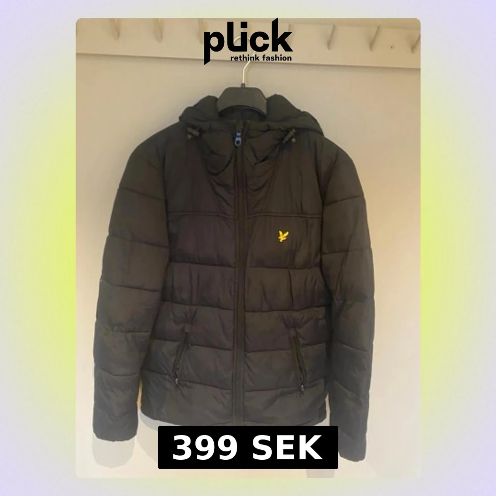Svart pufferjacka från Lyle & Scott med huva och gul broderad logga på bröstet. Jackan har dragkedja framtill, två sidofickor med dragkedja och quiltad design. Perfekt för kalla dagar och har en schysst, enkel look.