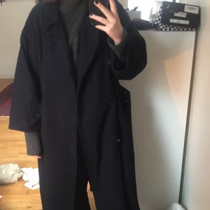 Mörkblå skitsnygg kappa, köpt secondhand men är i superbra skick! Står inte storlek men skulle gissa L!