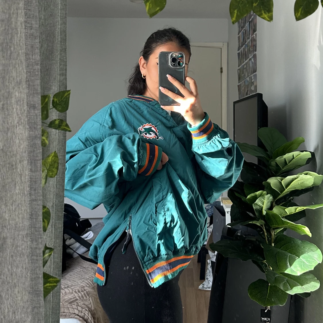 Den snyggaste Old school jackan köpt på second hand men fick ingen användning. Oversized och inte så tunn. Turkos.