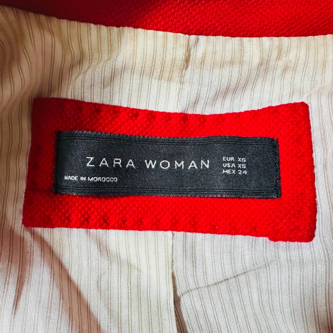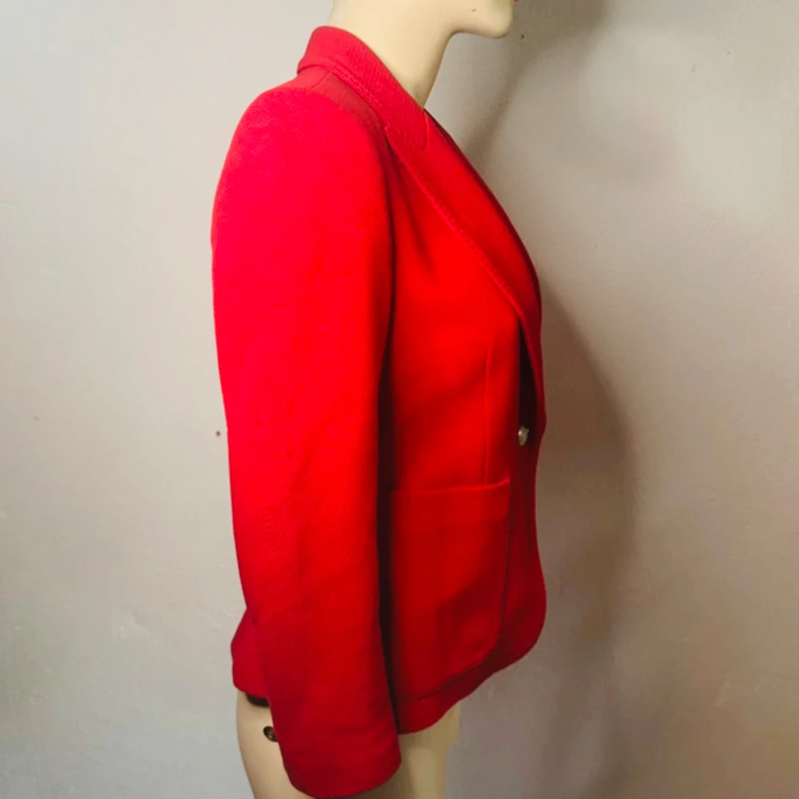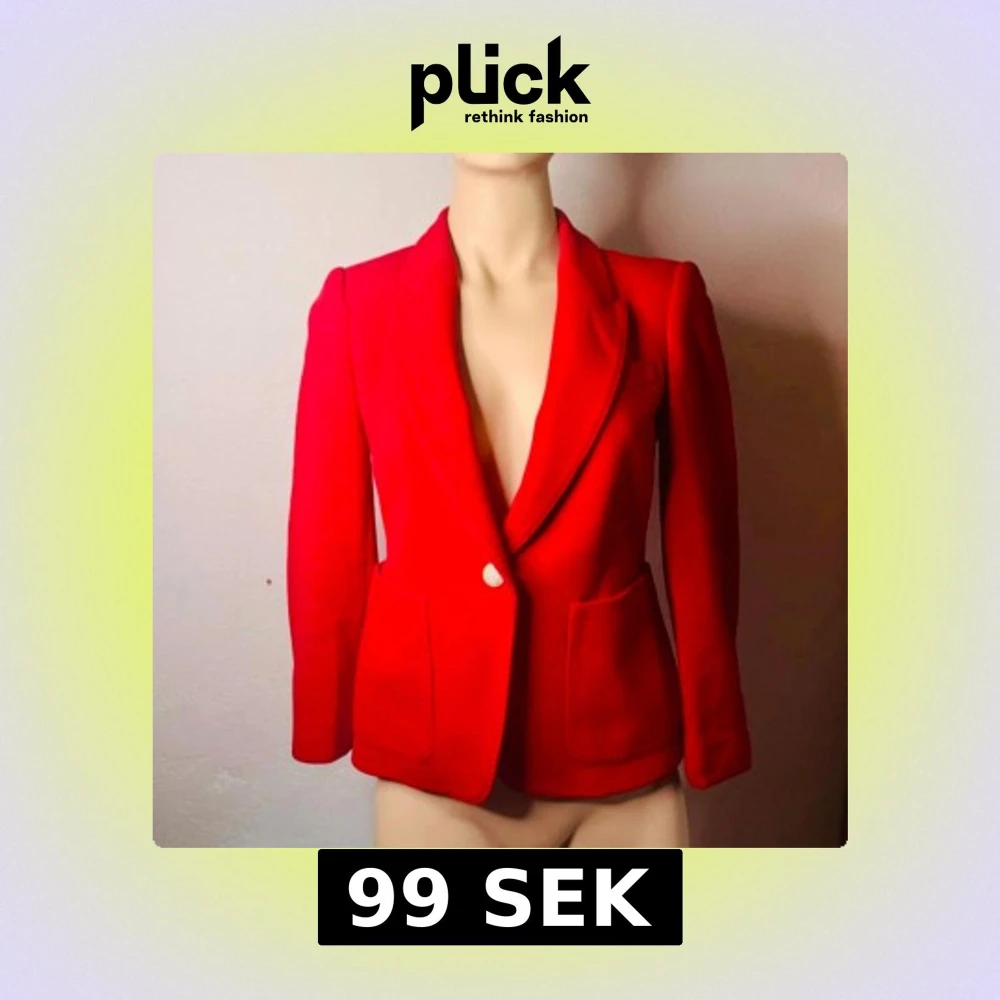 Skarpt röd kavaj från Zara Woman i figursydd modell med markerade axlar och djup krage. Sitter snyggt och ger en kraftfull silhuett – perfekt till både vardag och fest. Helfodrad med randigt innerfoder och två fickor framtill. Storlek: XS. Skick: Mycket fint begagnat skick. Ingen prutning, men jag erbjuder bundlerabatt vid köp av flera plagg. Kolla gärna mina andra annonser också! ⸻